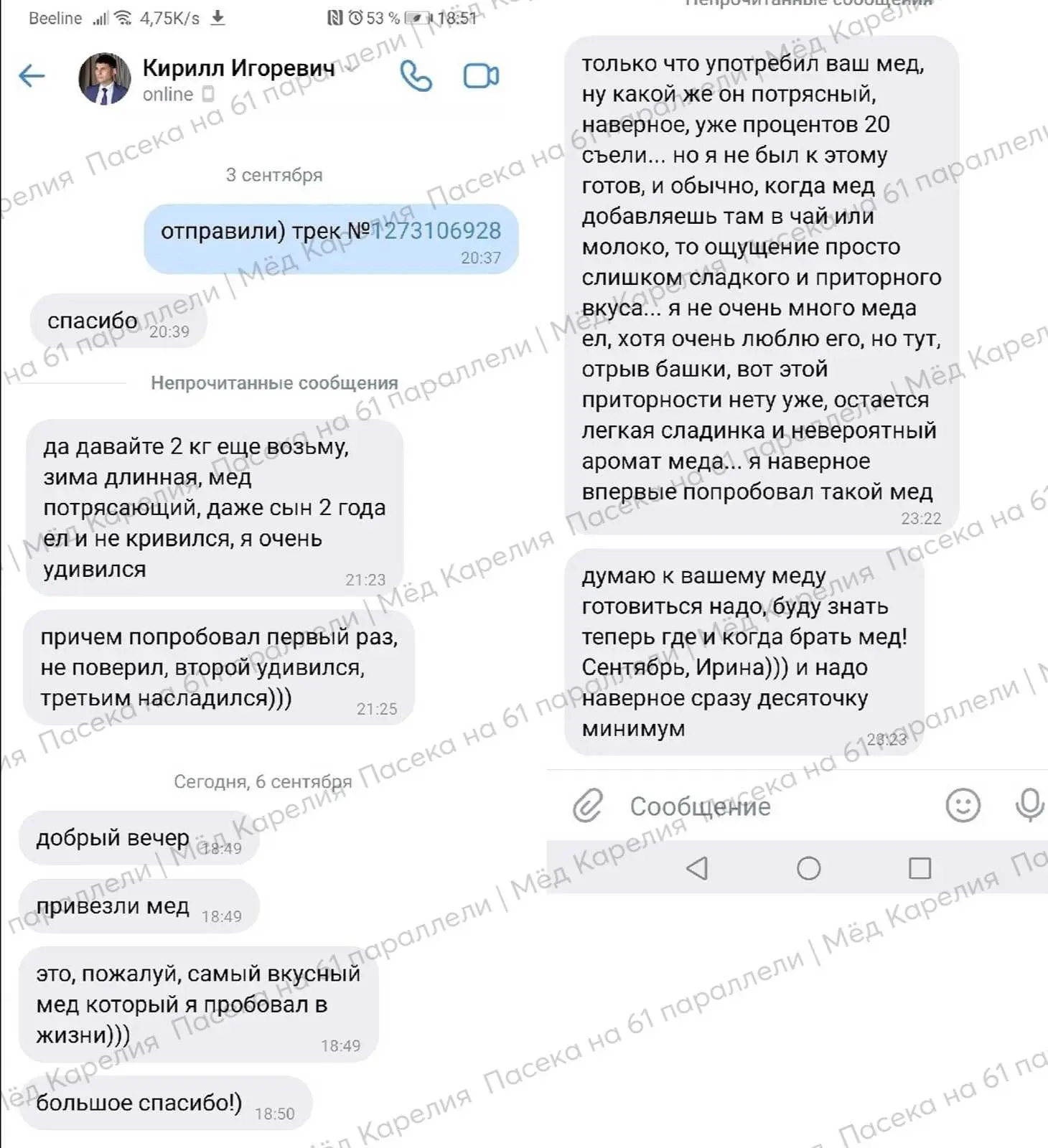 Мы живем в Карелии, окруженные девственной природой, нетронутыми лесами, на берегу реки. Пасека на полях (с северными дикоросами и культивируемыми нами ценными медоносами), на которых наши дети играют с нашими собаками и растут в единении с природой, которое тут ощущается особенно ярко.